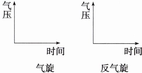 在下面图中画出气旋、反气旋过境时的气压变化图。