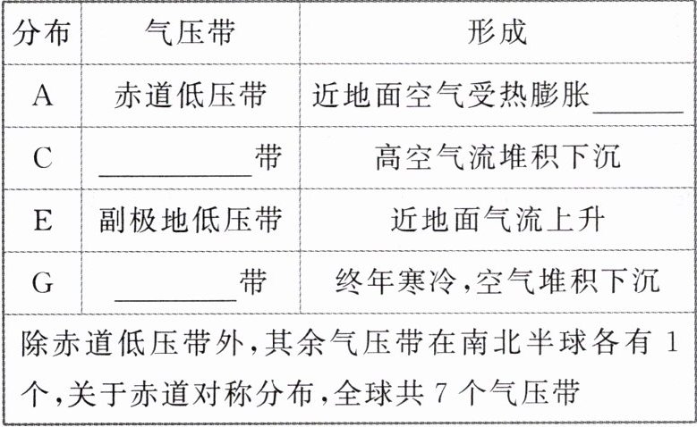 | G | 极地高压带 | 终年寒冷,空气堆积下沉 |