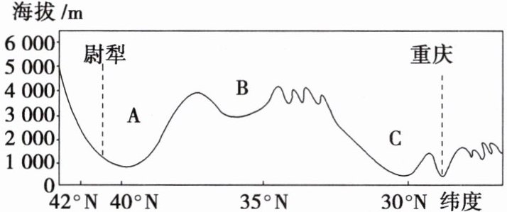 (2024·河南洛阳联考)下图为沿重庆—新疆尉犁所做的地形剖面图。读图,完成1~2题。