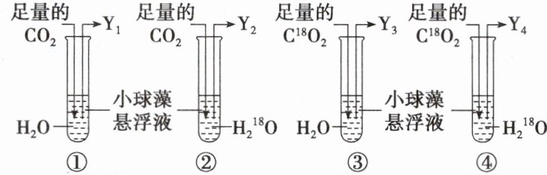 针对练2. 如图表示较强光照且温度相同以及水和小球藻的质量相等的条件下,小球藻进行光合作用的实验示意图。实验进行一段时间后,下列相关叙述错误的是( )