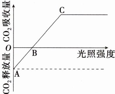 (2) B点时,所对应的CO₂吸收量和释放量为0,试分析此时光合速率与细胞呼吸速率的关系及B点的含义。