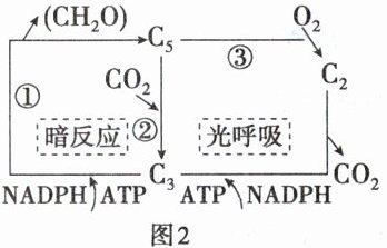 (3) 催化过程②和③的均是Rubisco,CO₂和O₂会竞争酶的同一活性位点。因此当O₂/CO₂偏高时,会________(填“促进”或“抑制”)过程②。