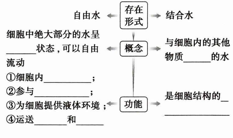 2.(先左右,后上下)游离 相结合 ①良好的溶剂 ②生物化学反应 ④营养物质 代谢废物 重要组成部分