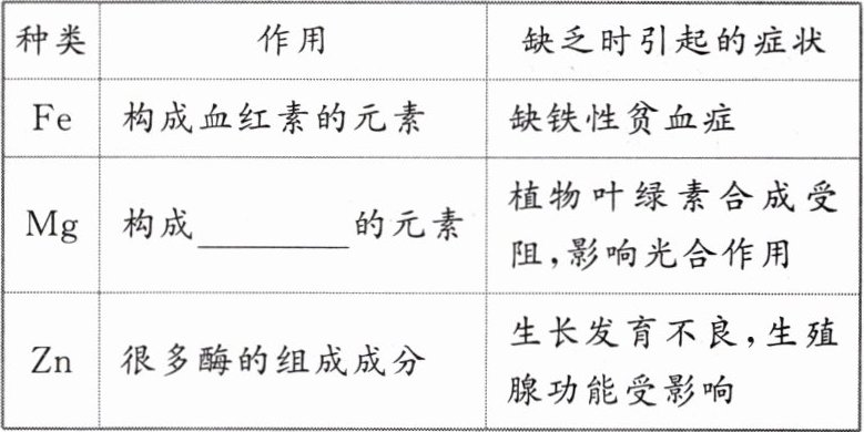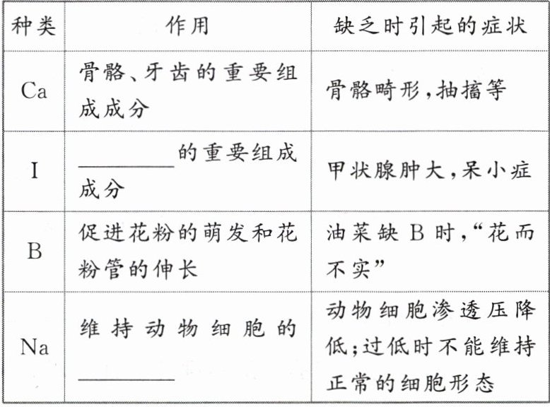 2. 常见无机盐的作用与缺乏症