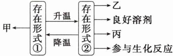 C.存在形式由②转变成①有利于提高植物的抗寒性、抗旱性等抗逆性