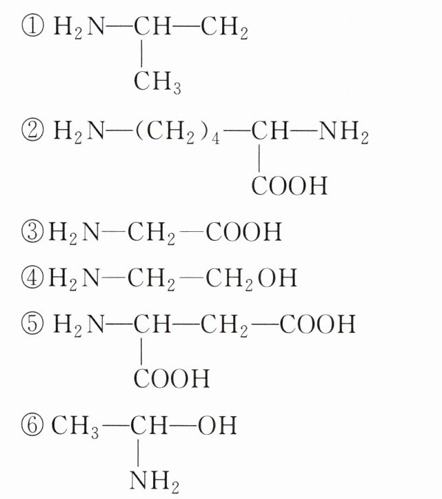 D.②和⑤的性质不同,是由②中的$ -(CH_2)_4 - NH_2 $与⑤中的$ -CH_2 - COOH $不同决定的