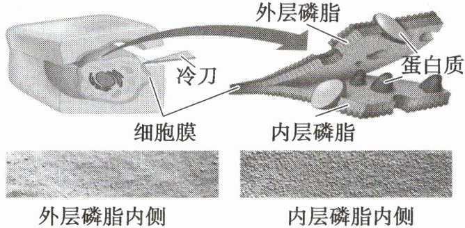 (2)科学家测定细胞膜的厚度是7~8nm,恰好是单层磷脂膜厚度的2倍,而按照“三明治”模型,加上两侧的蛋白质,膜的总厚度应当超过20nm。物理学家将细胞膜冰冻处理后用冷刀断开,升温后暴露两层磷脂之间的断裂面,复膜后在电镜下观察断裂面的形态结构如图所示。通过上述实验结果,你认为蛋白质在细胞膜中是怎样分布的?