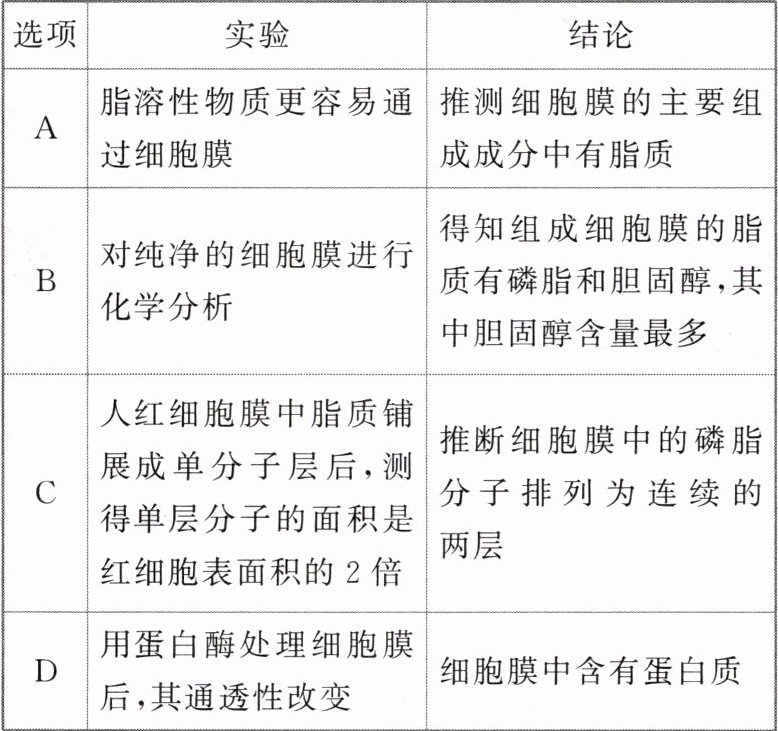 下列关于细胞膜成分的探索历程中相关实验与结论之间对应关系错误的是( )