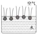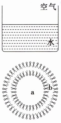 (2)水是一种极性溶剂,根据磷脂分子的结构特点在右图画出它在水—空气界面上的分布情况(用●=表示磷脂分子)。