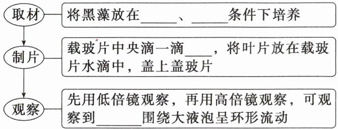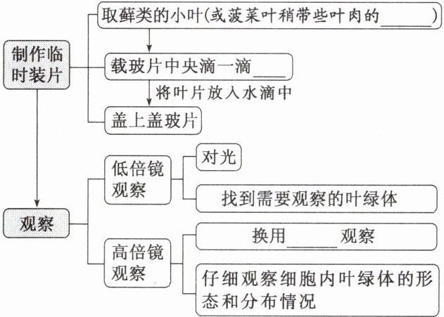 (1)叶绿体一般呈绿色、扁平的____或球形,可以在高倍显微镜下观察它的形态和分布。