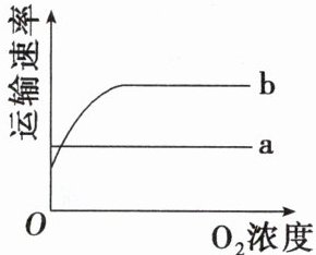 图中曲线 $ a $、$ b $ 表示不同跨膜运输方式的运输速率与 $ O_2 $ 浓度的关系,下列分析错误的是 ( )