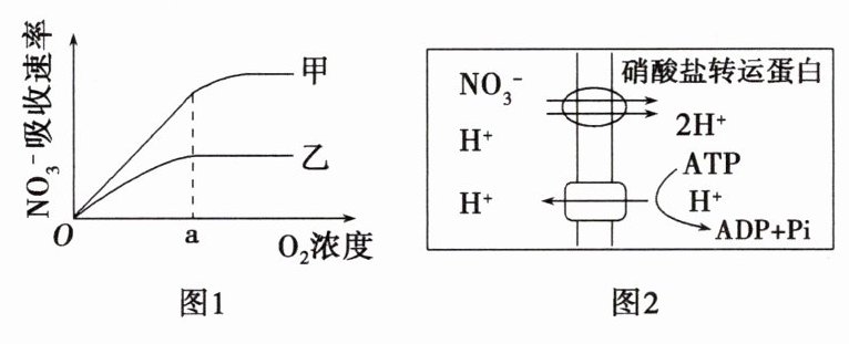 A.由图1可判断 $ NO_3^- $ 进入根细胞的运输方式是主动运输