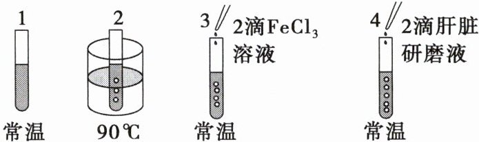 (3)滴加肝脏研磨液和FeCl₃溶液时,若共用一支吸管,则滴加的FeCl₃溶液中会含少量肝脏研磨液,而肝脏研磨液中的过氧化氢酶催化效率比Fe³⁺高,会使两支试管中产生的气泡差别不大,不易对比观察,从而影响实验结果的准确性。
