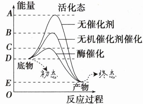(1) 没有催化剂时的活化能是多少? 有酶催化时的活化能又是多少? (用图中字母表示)