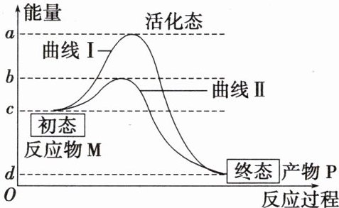 针对练2. 如图曲线Ⅰ、Ⅱ分别表示物质$M$在无催化剂条件和有酶催化条件下生成物质$P$所需能量的变化过程。下列叙述正确的是 ( )