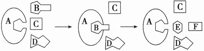 材料2:图中A表示酶,B表示被A催化分解的底物,E、F表示B被分解后产生的物质,C、D表示不能被A催化的物质。