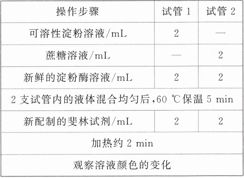 (1)试管1中淀粉被水解,试管2中蔗糖没有被水解。