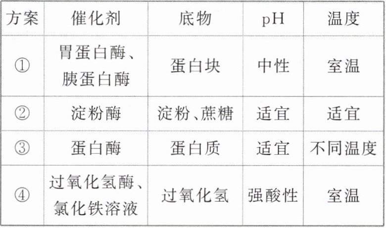 C.方案③的目的是验证温度对酶活性的影响,可用双缩脲试剂检测
