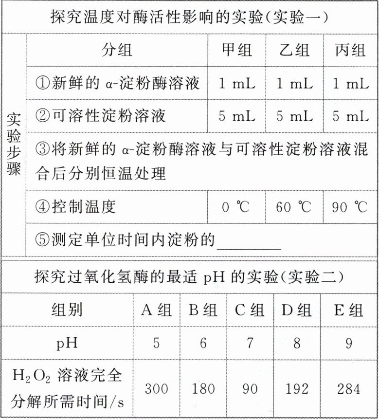 下表分别是某兴趣小组探究温度对酶活性影响的实验步骤和探究过氧化氢酶作用的最适 pH 的实验结果,已知α-淀粉酶作用的最适温度为 60℃。据此回答下列问题。