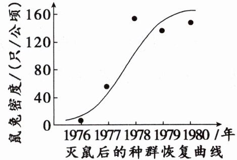 1976年科学家在某地区调查时,发现当年6~7月在该地采用0.2%氟乙酰胺喷雾灭鼠,当年鼠兔(高原鼠兔和中华鼢鼠)种群密度由58.66只/公顷降为1.88只/公顷。但4年后,种群密度恢复为165只/公顷。