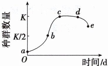 (1) 曲线的总趋势是____,原因是在开始时(ac段)培养液的营养充足、空间充裕、条件适宜,酵母菌大量繁殖,种群数量剧增。开始一段时间内,酵母菌的增长符合“S”形曲线增长模型(ad段)。随着酵母菌数量的不断增多,营养消耗、pH变化、____等,生存条件恶化,酵母菌死亡率高于出生率,种群数量下降(de段)。
