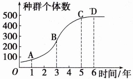 针对练6.D 据图可知,该环境条件所能维持的种群最大数量大约是500只,A正确;捕捞后的种群数量控制在K/2,此时种群增长速率最大,有利于持续获得较大的鱼产量,因此鱼类捕捞后的种群数量控制在曲线的B点最合适,B正确;对人类有害的生物控制,限制其种群数量的最好方法是尽量降低其K值,C正确;种群的增长速率最快点在B点,种群数量达到K值后,数量保持相对稳定,而不是不变,D错误。