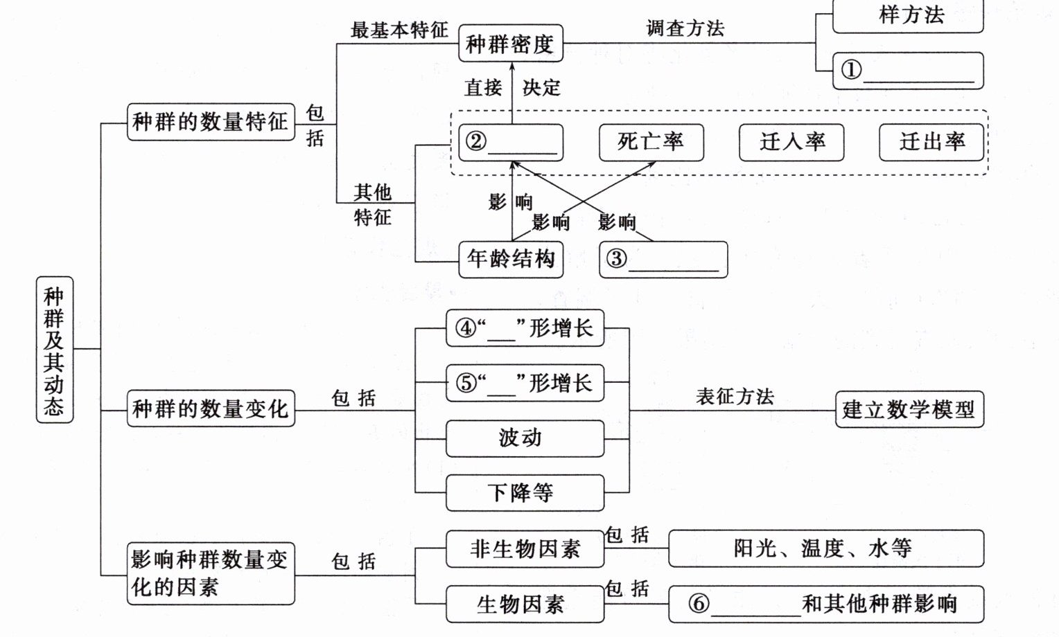 ①标记重捕法 ②出生率 ③性别比例 ④J ⑤S ⑥种内竞争