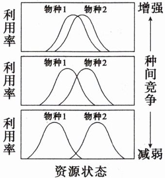 D.如果两个物种的生态位是完全分开的,则一般会有未被利用的资源