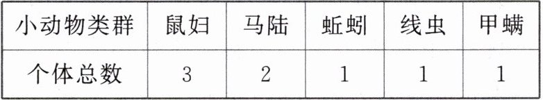 针对练5.(2024·南平高二期末)某生物兴趣小组进行“研究土壤中小动物类群的丰富度”的探究活动,结果如下表,下列叙述错误的是( )