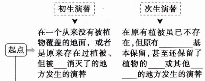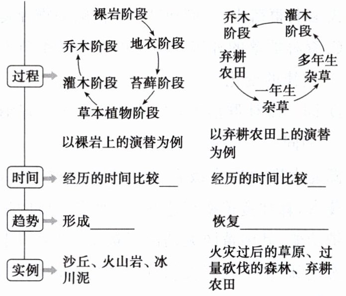 (1)(初生演替:)彻底 长 新群落 (次生演替:)土壤条件种子 繁殖体 短 原来的群落
