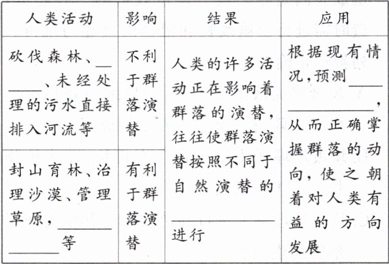 1.过度放牧 建立人工群落 速度和方向 群落的未来