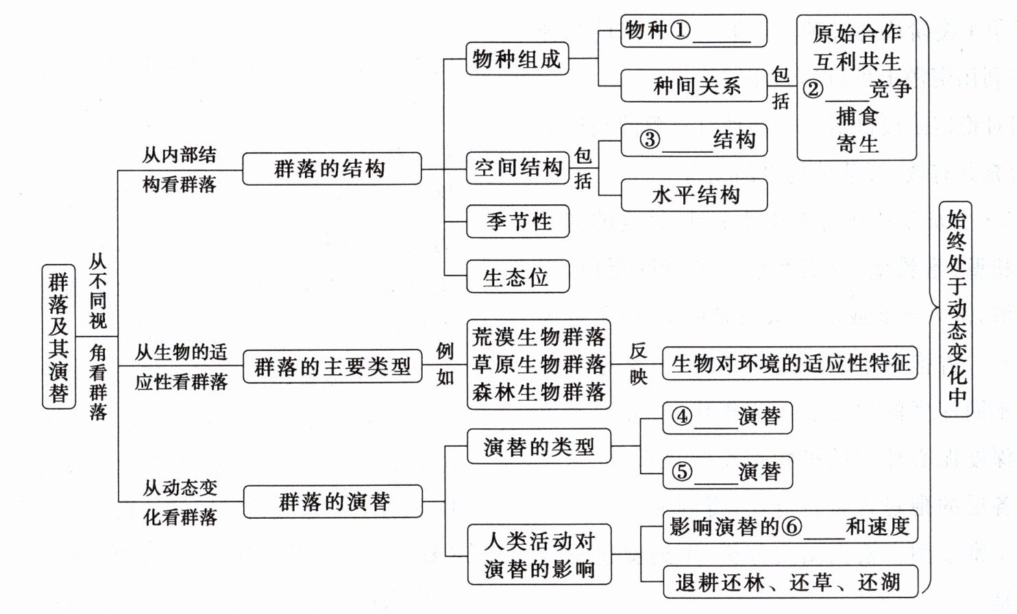 ①丰富度 ②种间 ③垂直 ④初生 ⑤次生 ⑥方向