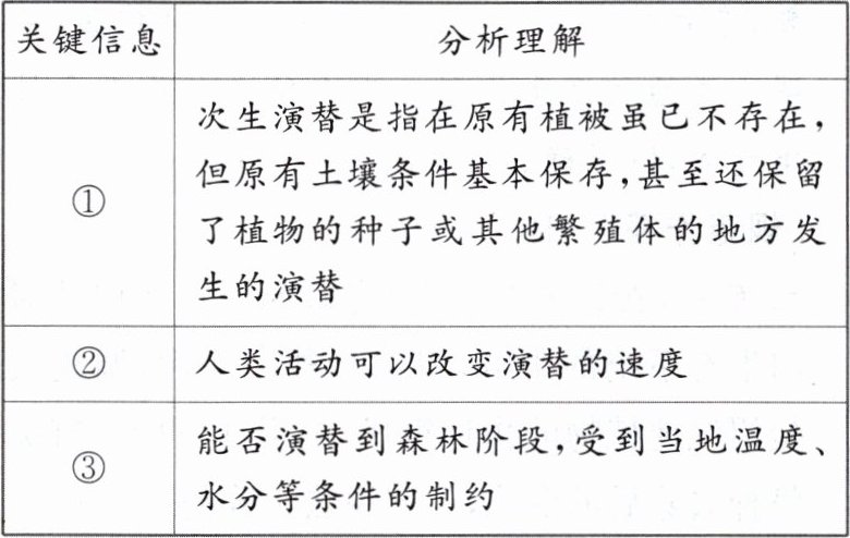 典例3(2024·江西卷)实施退耕还林还草工程是我国践行生态文明思想的重要举措。下列关于某干旱地区退耕农田群落演替①的叙述,错误的是( )