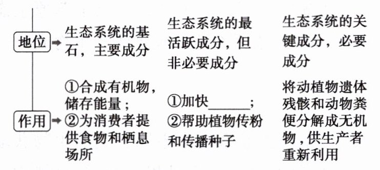 微提醒:生态系统的组成成分包括生产者、消费者、分解者和非生物的物质和能量。