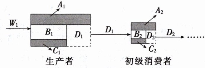 D.生产者固定的太阳能还可表示为$A_1 + A_2 + B_1 + B_2 + C_1 + C_2 + D_2$