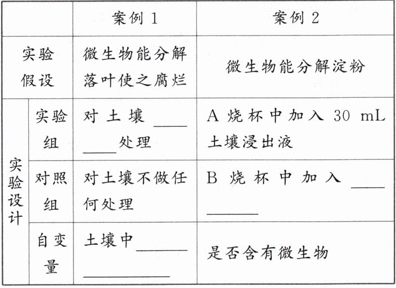 [微思考] 1.自变量是土壤中微生物的有无;因变量是落叶的分解程度。