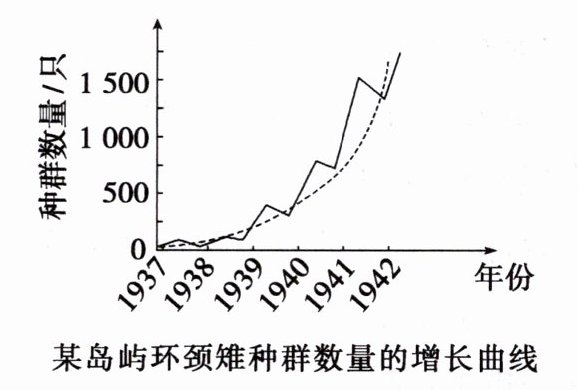 材料2:20世纪30年代,人们将环颈雉引入某地一个岛屿。1937-1942年,这个种群数量的增长如图所示。回答有关问题。