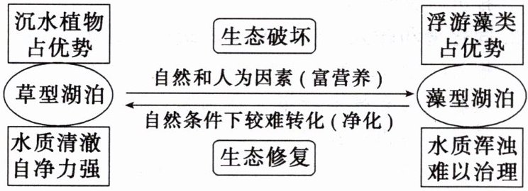 6. (创新情境)湖泊是地球上最重要的水资源之一,湖泊生态系统有两种稳态,如下图所示。