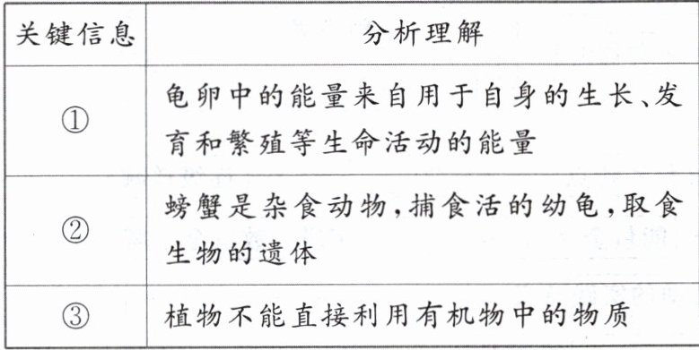 B.螃蟹能取食幼龟和死亡胚胎:说明螃蟹既是消费者,又是分解者②