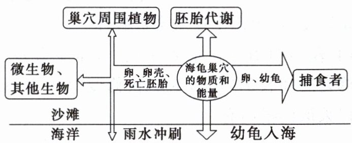 典例1 (2024·海南卷)海龟是国家一级重点保护野生动物,其上岸产卵的行为促进了海洋与陆地间的物质循环和能量流动。在龟卵孵化过程中,巢穴的物质和能量与周围环境的关系如图。下列叙述错误的是 ( )