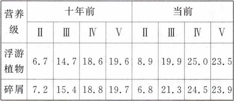 (2) 由表1可知,当前捕食食物链各营养级间的转换效率比十年前______,表明渤海各营养级生物未被利用的和流向碎屑的能量______。