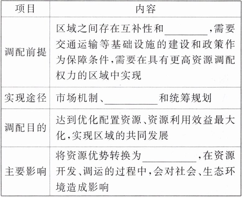1. 调配原因:国家为了解决国内资源及其产品________的空间不匹配问题。