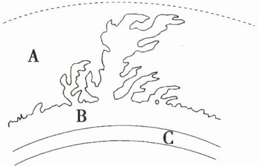 1. 太阳大气层:图中 A 层是____层,B 层是色球层,C 层是____层。