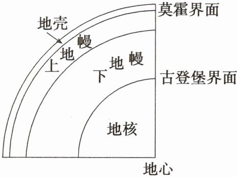 (2024·四川学业水平合格性考试)2022年6月22日,阿富汗发生6.1级地震,震源深度10千米。右图示意地球内部圈层结构。据此完成5~6题。