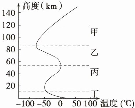 (2025·北京密云区高一期末)探空气球携带仪器升空来测量大气压力、温度、湿度和风速等信息,每天会规定时间升起,上升到约 30 km 高空后自行爆裂,仪器通过降落伞带回地面。读大气垂直分层示意图,完成 1~3 题。