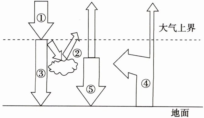 (2025·北京东城区高一期末)墨脱县$(29^{\circ }N,95^{\circ }E)$位于西藏东南部,平均海拔 1200 米。下图为大气受热过程示意图,下表为墨脱县气候资料。读图表,完成 1~2 题。