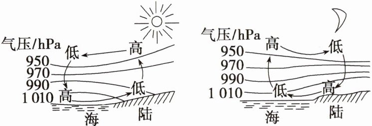 1. 形成:海(湖)陆热力性质差异,白天陆地增温快,海洋(湖泊)增温慢,陆地气温高于海洋(湖泊),陆地气压低于海洋(湖泊),风由海洋(湖泊)吹向陆地;夜晚陆地降温快,海洋(湖泊)降温慢,陆地气温低于海洋(湖泊),陆地气压高于海洋(湖泊),风由陆地吹向海洋(湖泊)。影响:调节滨海(湖泊沿岸)地区气候,降低气温日较差。