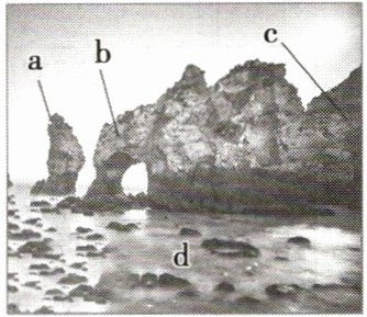 3.D 4.B 5.A 第3题,图中a为海蚀柱,b为海蚀拱桥,c为海蚀崖,均为海蚀地貌,A、B、C错误;d为沙滩,为海浪堆积地貌,D正确。第4题,图中c地貌为陡峭的崖壁,其名称为海蚀崖,B正确。第5题,若该地海水环境不变,随着海浪继续侵蚀,a地貌(海蚀柱)有坍塌风险,c地貌(海蚀崖)可能侵蚀出海蚀穴,有洞穴发育,①②正确;b地貌(海蚀拱桥)的“门”越来越大,③错误;随着海浪堆积作用的继续,d地貌也可能面积会增大,不会完全被海水淹没,④错误。故选A。