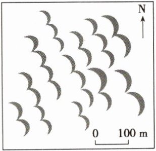 (2025·广东惠州高一期末)右图为我国某地新月形沙丘链分布示意图。据此完成 1~2 题。