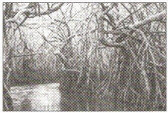 (2024·黑龙江哈尔滨高一期末)红树林(右图)指生长在热带、亚热带海岸潮间带上部,受周期性潮水浸淹,以红树植物为主体的常绿灌木或乔木组成的潮滩湿地木本生物群落,组成的物种包括草本、藤本红树。据此完成 3~4 题。
